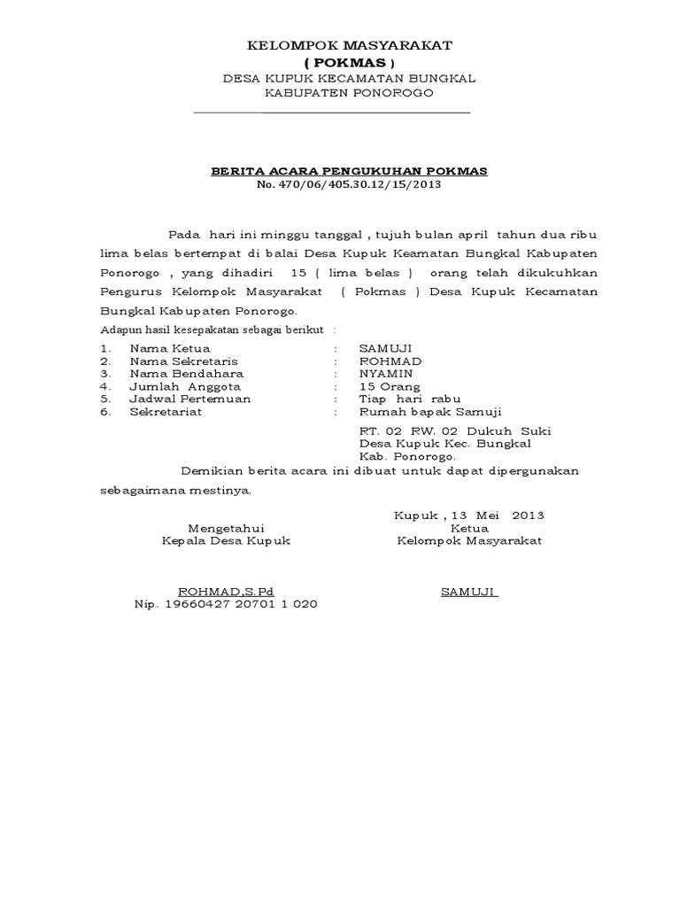 Berita acarapemungutan dan penghitungan suarapemilihan ketua pada hari ini jumat malam sabtu tanggal 23 bulan januaritahun dua ribulimabelas, panitia pemilihan ketua rt melaksanakan pemungutan suara. Berikut adalah rentetan proses yang harus diikuti mulai dari rt hingga kantor urusan agama (kua). Pemilihan ketua rt layaknya pemilu pertama kali di. Panitia acara pun bisa mengirimkan surat pemberitahuan kegiatan ke polsek setempat dimana acara dilaksanakan. Kalibata dipimpin oleh ketua panitia ust.